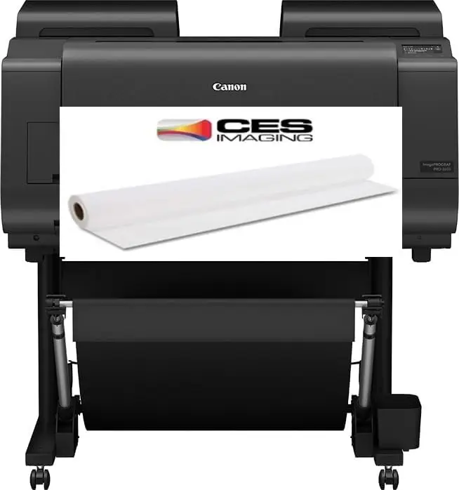 The CES IMAGING ImagePROGRAF PRO-2600 is a high-precision, large-format printer designed for office and professional imaging use. It employs a 12-color LUCIA PRO pigment ink system, ensuring superior color accuracy and longevity. Featuring a 1.28-inch wide print head with 18,432 nozzles, it enables high-resolution prints up to 2,400 x 1,200 dpi. The device supports media roll widths up to 24 inches (610 mm), catering to various print sizes from proofs to photographic and fine art prints. Equipped with a robust control board and dedicated image processing engine, it ensures fast data throughput for efficient printing workflows. Connectivity options include USB 3.0, Ethernet, and support for advanced RIP software integration, supporting both office and production environments.