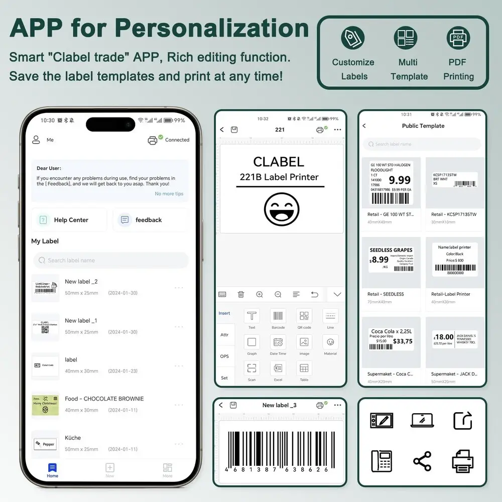 The CLABEL 221B offers superior printing quality due to its high 203 dpi resolution, ideal for crisp, clear barcodes. Its multi-interface connectivity facilitates seamless integration with existing office hardware. The printer supports a wide range of label materials and sizes, enhancing versatility. Its compact and durable design is suitable for various office conditions. The device includes easy-to-load media mechanisms simplifying user operations. Low operating noise and energy-efficient components promote a quiet and eco-friendly workplace environment.