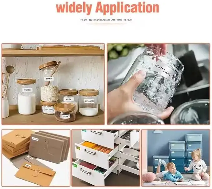 The device supports a variety of thermal labels in different widths and materials suitable for office labeling purposes.