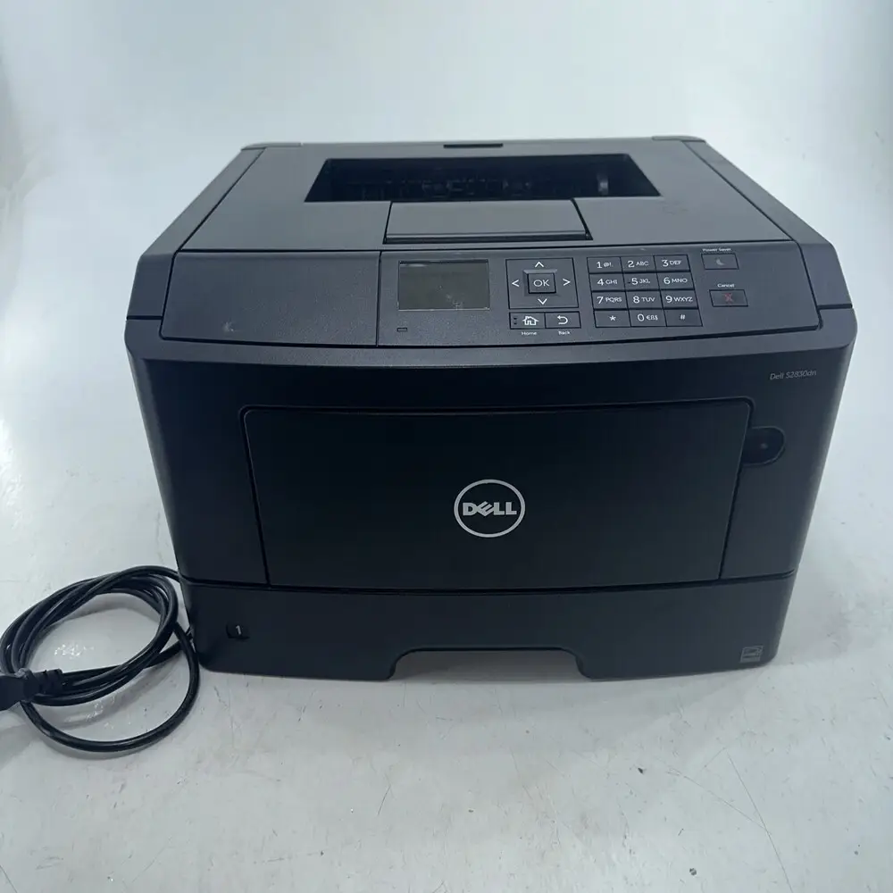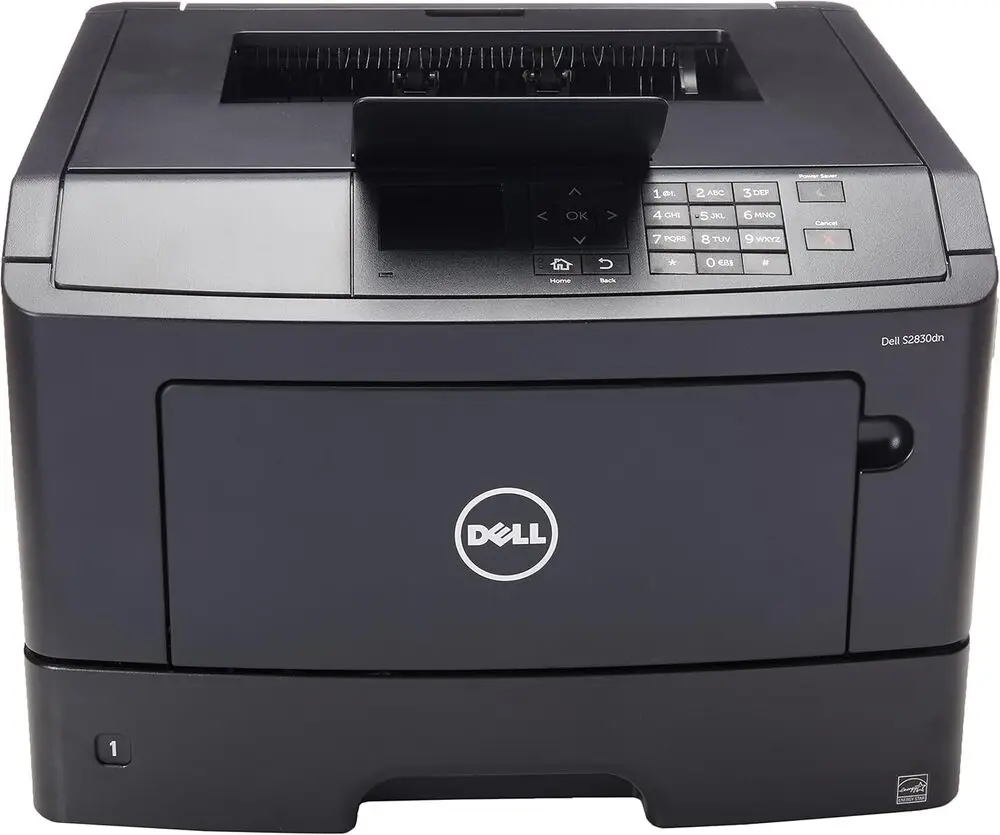 The Dell S2830dn is a monochrome laser printer designed for small to medium office environments. It features a high-speed printing capability of up to 33 pages per minute with a print resolution of up to 1200 x 600 dpi. The device supports PCL 5e/6 and PostScript 3 emulations, ensuring compatibility with various operating systems and applications. It includes a 250-sheet input tray and a 100-sheet multipurpose tray, with an optional second 530-sheet input tray to expand capacity. Connectivity options include standard USB 2.0 and Ethernet interfaces, enabling flexible network integration. Equipped with a 600 MHz processor and 128 MB RAM expandable to 384 MB, the printer efficiently manages complex print jobs with minimal delay.