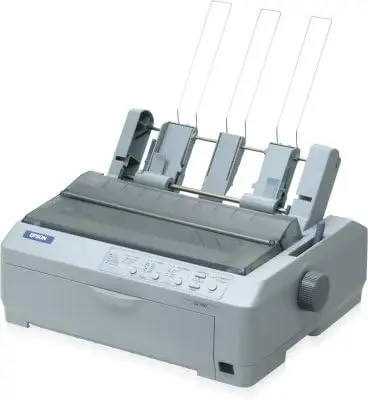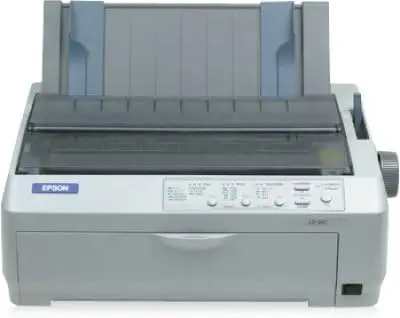 The printer is designed to handle multi-part forms up to 5 sheets, making it suitable for invoices and receipts. It includes a simple LCD display for basic operation status feedback and error alerts. The model supports ESC/P and ESC/P2 command sets for compatibility with various printing software. Its power management features contribute to energy efficiency in prolonged office use.