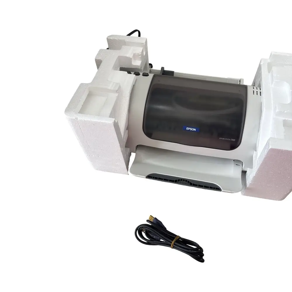 The printer supports PictBridge, allowing direct photo printing from compatible digital cameras without a PC. It features Epson's Print CD, enabling users to print images directly onto CDs and DVDs. The device makes use of Epson's advanced ink technology to produce durable prints with quick drying time. Offering both Windows and Mac OS drivers, the Stylus Photo C60 is adaptable to various operating systems of its time.