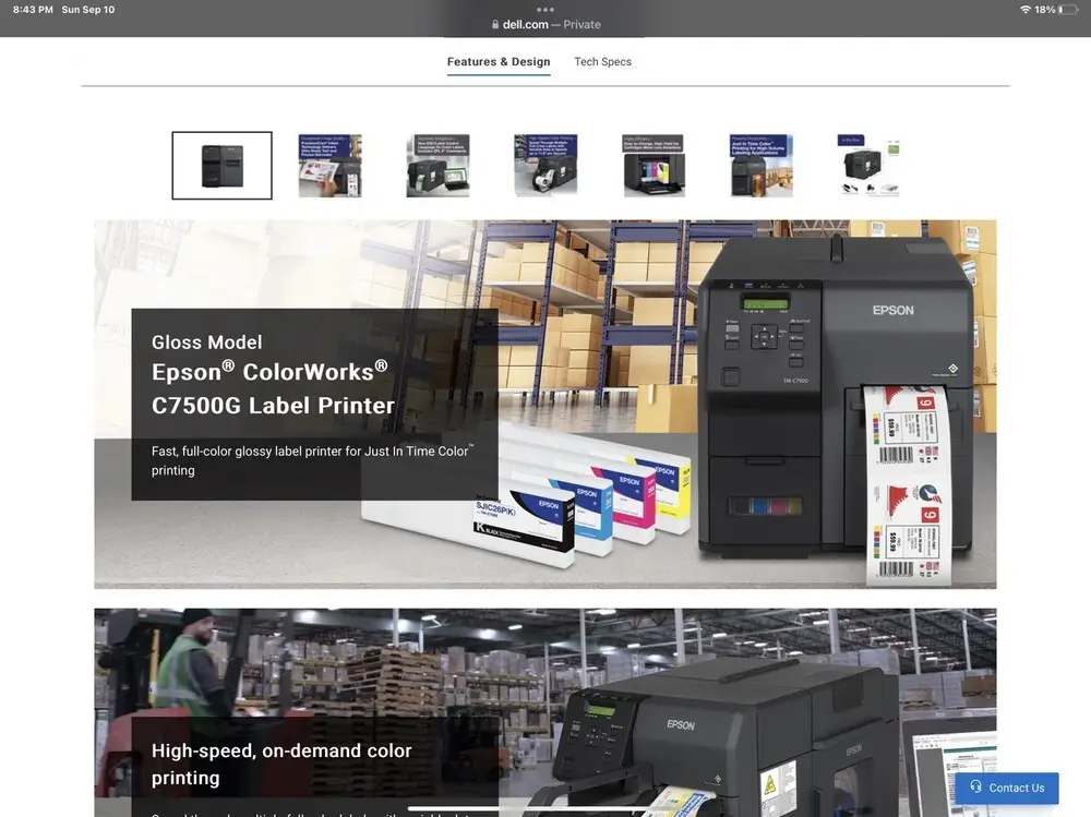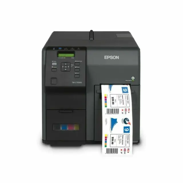 The Epson C7500GE uses advanced PrecisionCore dye sublimation printing technology optimized for high-resolution and high-speed output.