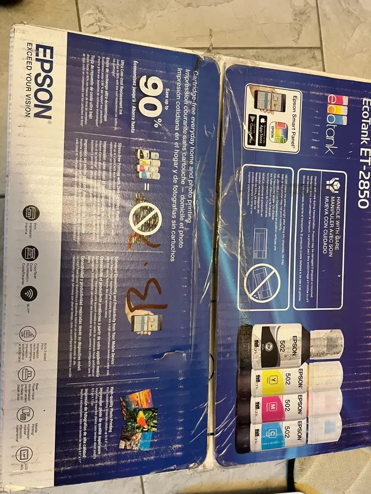 The Epson EcoTank ET-2850 is a compact all-in-one printer designed primarily for home office and small business environments. It utilizes Epson's innovative cartridge-free ink tank technology, allowing for high-volume printing at a low cost per page. The printer supports wireless connectivity via Wi-Fi, enabling seamless printing from smartphones, tablets, and PCs. It incorporates print, scan, and copy functions with compatible drivers supporting various paper sizes up to A4. The device supports a variety of operating systems including Windows and macOS, ensuring broad compatibility. Additionally, it provides automatic borderless printing and a modest print speed that suits moderate daily document loads.