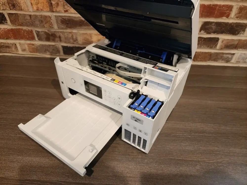 The print speed of the ET-2850 is moderate, which might not satisfy users requiring rapid, high-volume printing. It does not include an automatic document feeder, meaning multi-page scans and copies require manual placement. The printer lacks fax functionality, limiting its use in offices where faxing remains important. Paper input capacity is relatively small compared to larger office-focused models, necessitating frequent refilling during heavy use. While photo print quality is good, it is not ideal for professional-grade photo printing. The device does not support Ethernet connectivity, relying solely on wireless and USB connections.