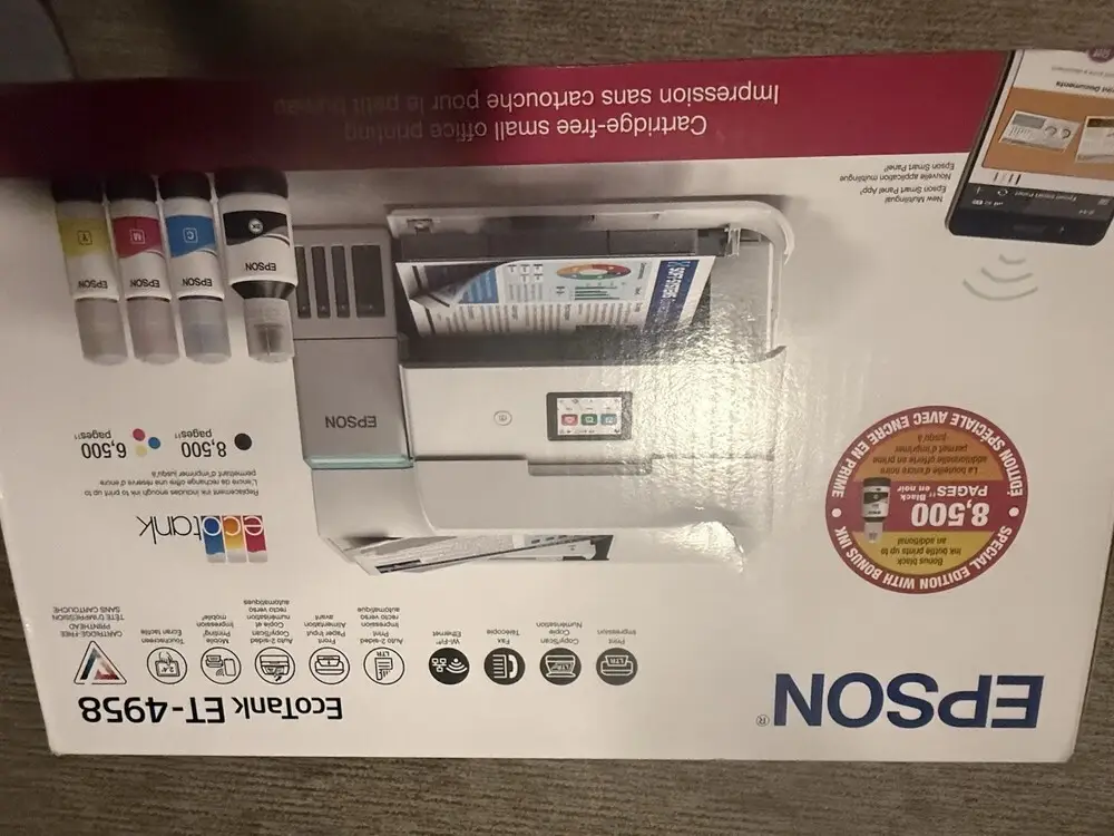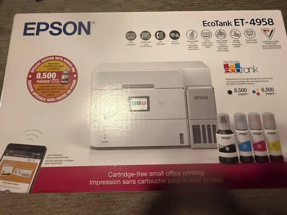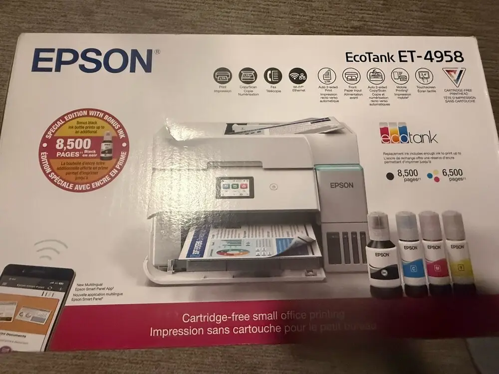 The Epson EcoTank ET-4850 boasts ultra-low running costs thanks to its high-capacity refillable ink tanks. It delivers fast print speeds suitable for medium to large office volumes. High-resolution output ensures sharp text and vibrant color printing. Multi-function capabilities reduce the need for multiple devices, saving office space. The printer supports wireless and wired connectivity for versatile usage scenarios. Its automatic document feeder facilitates efficient scanning and copying tasks.