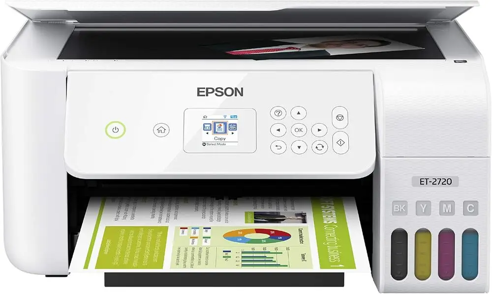 The Epson EcoTank ET-2720 White features a high-capacity ink tank system that provides thousands of pages per refill, dramatically lowering the cost per page. Its wireless printing capabilities enable convenient printing from smartphones, tablets, and laptops without the need for cables. The compact and sleek design fits comfortably in tight office spaces, maintaining functionality without sacrificing desk space. It delivers high-quality prints, suitable for both text and photo documents, with fast print speeds to enhance productivity. Its easy-to-refill ink tanks minimize mess and waste compared to cartridges. Additionally, the printer supports scan and copy operations, consolidating multiple functionalities into one device.
