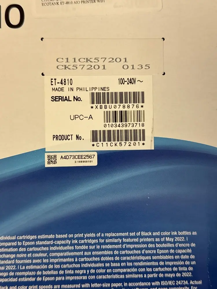 The control panel includes an intuitive 1.44-inch color LCD for easy navigation and operation. The ET-4810 uses Epson’s DURABrite Ultra pigment ink which ensures durable, smudge-resistant output. It supports advanced features like borderless photo printing and two-sided (duplex) printing enhancing functional flexibility in office workflows. The device requires a USB connection for wired use but favors wireless for convenience. Power consumption is optimized for energy efficiency in office settings. Overall, the Epson ET-4810 offers a balanced mix of technical specifications suited for small to medium office environments seeking low-cost printing with multifunction capabilities.