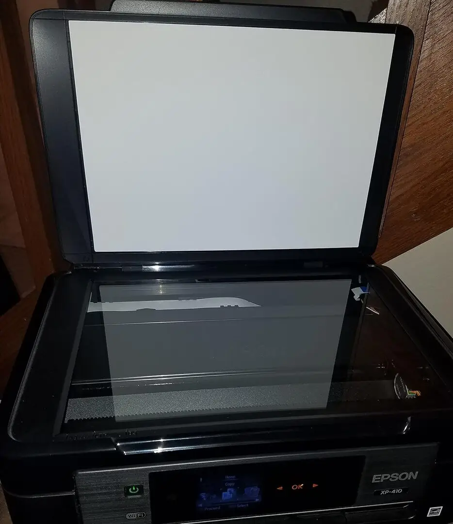 Yes, the XP-410 includes a flatbed scanner but does not feature an automatic document feeder for multi-page scanning.