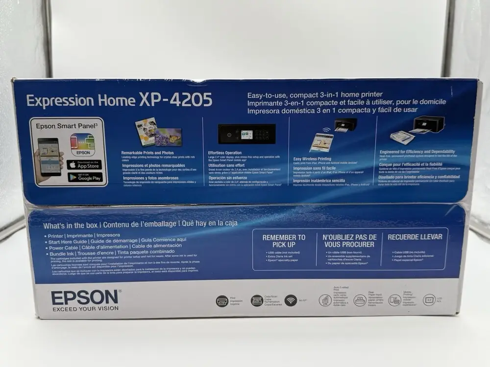 The XP-4205 offers reliable wireless connectivity, enabling easy printing from smartphones and tablets without cables. Its compact footprint makes it ideal for limited desk space. The usage of Claria Home ink provides vibrant photo-quality prints at a low cost. The automatic document feeder boosts efficiency for scanning and copying multi-page documents. Energy Star certification ensures the printer is energy-efficient and environmentally friendly. Additionally, the device supports multiple operating systems, increasing compatibility and ease of use.