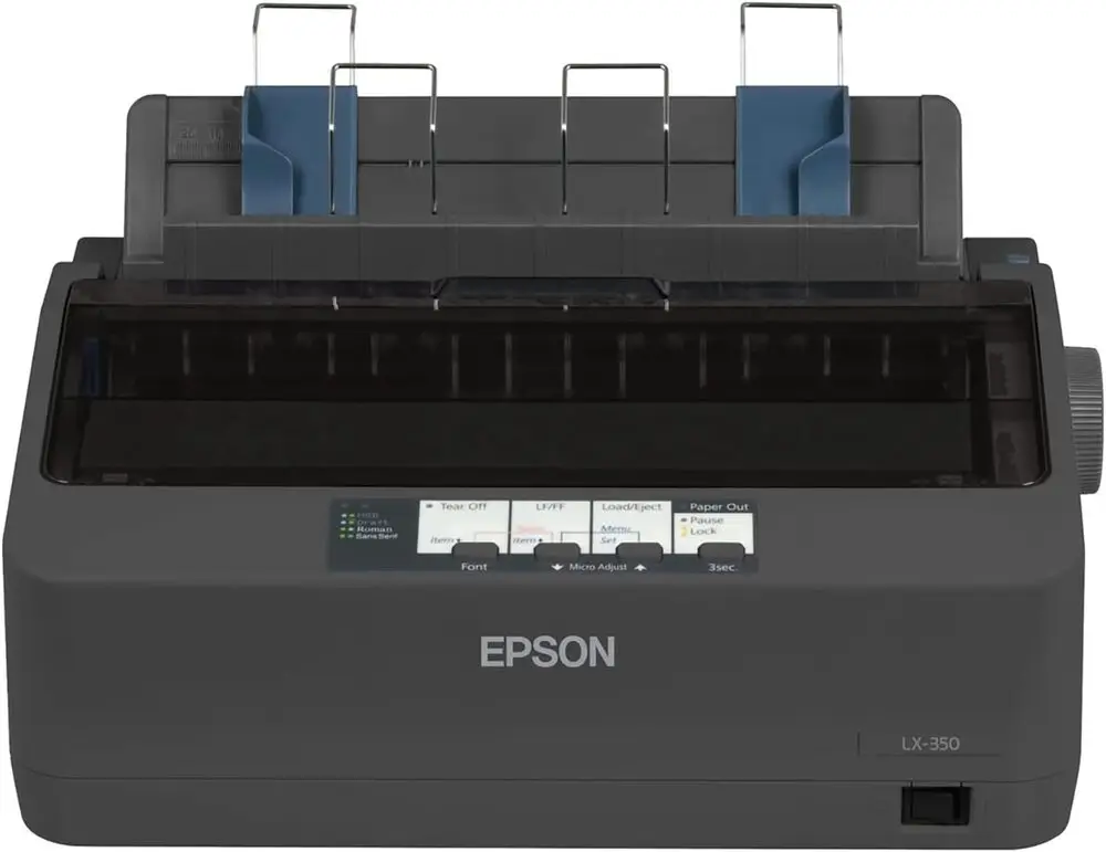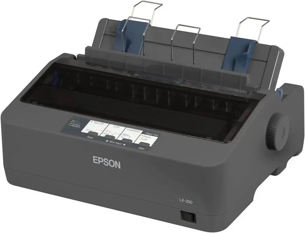 The Epson LX-350 is limited by its dot matrix technology, producing lower resolution prints compared to modern inkjet or laser printers. It primarily supports parallel interface connectivity, which could be incompatible with newer computers without adapters. The printing noise is significantly higher than non-impact printers, which may be disruptive in quiet office environments. Color printing capabilities are very limited, focusing mainly on monochrome output. The device lacks advanced features such as wireless connectivity and duplex printing, common in newer models. Additionally, consumables like ribbon cartridges may be less readily available as this model has aged.