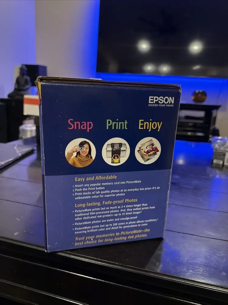 This printer supports specially designed Epson photo papers such as the PictureMate Premium Glossy Photo Paper for borderless 4x6 prints.