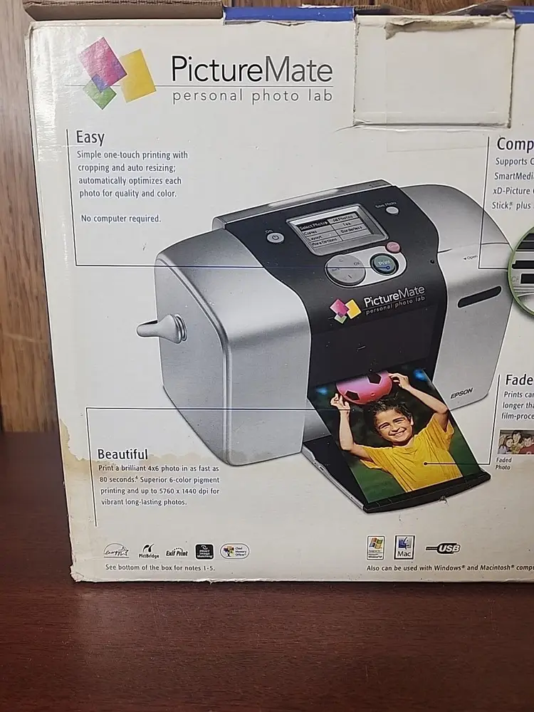 The Epson PictureMate Express Edition provides excellent photo print quality with its Advanced Micro Piezo inkjet technology. Its compact size saves space in any office or home environment. Fast print speeds for 4x6 inch photos reduce wait time significantly. The use of DURABrite Ultra Ink increases print durability and resistance to fading. Easy-to-use Epson software enhances user control over photo printing tasks. Additionally, the device supports borderless photo printing, delivering professional and clean print edges.