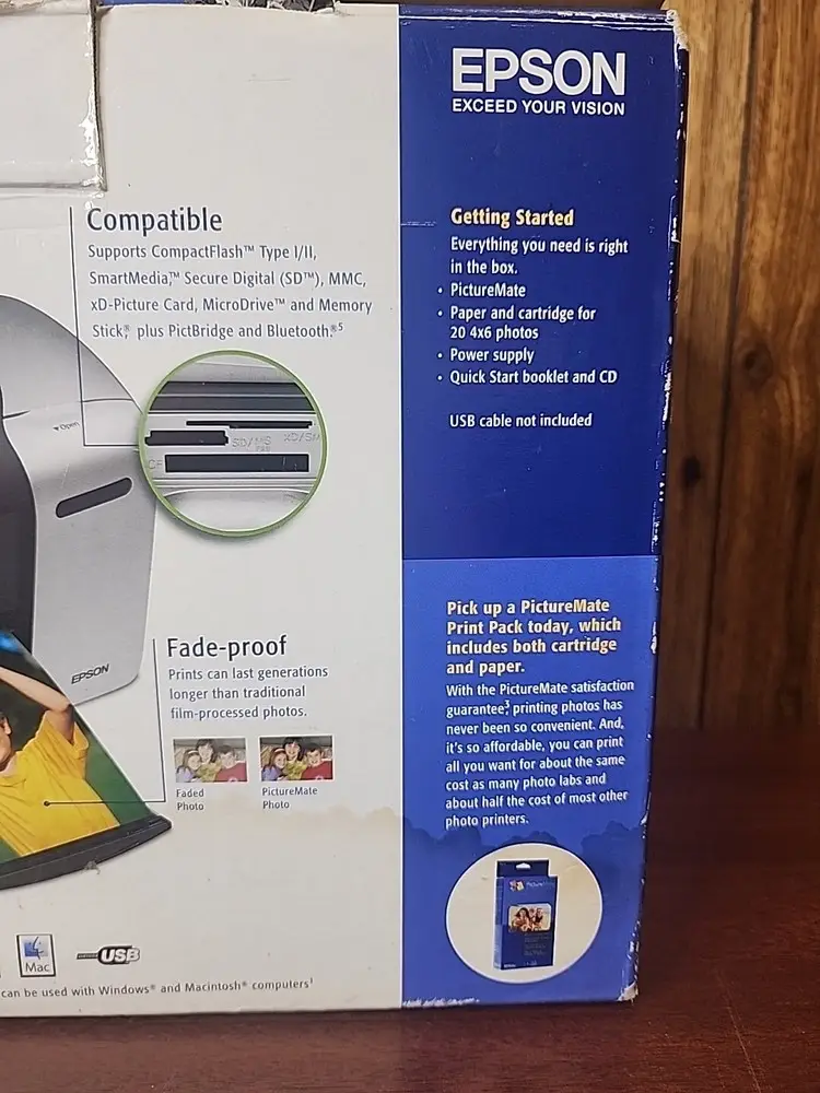 It uses Epson DURABrite Ultra Ink which provides water-resistant and smudge-proof photo prints.
