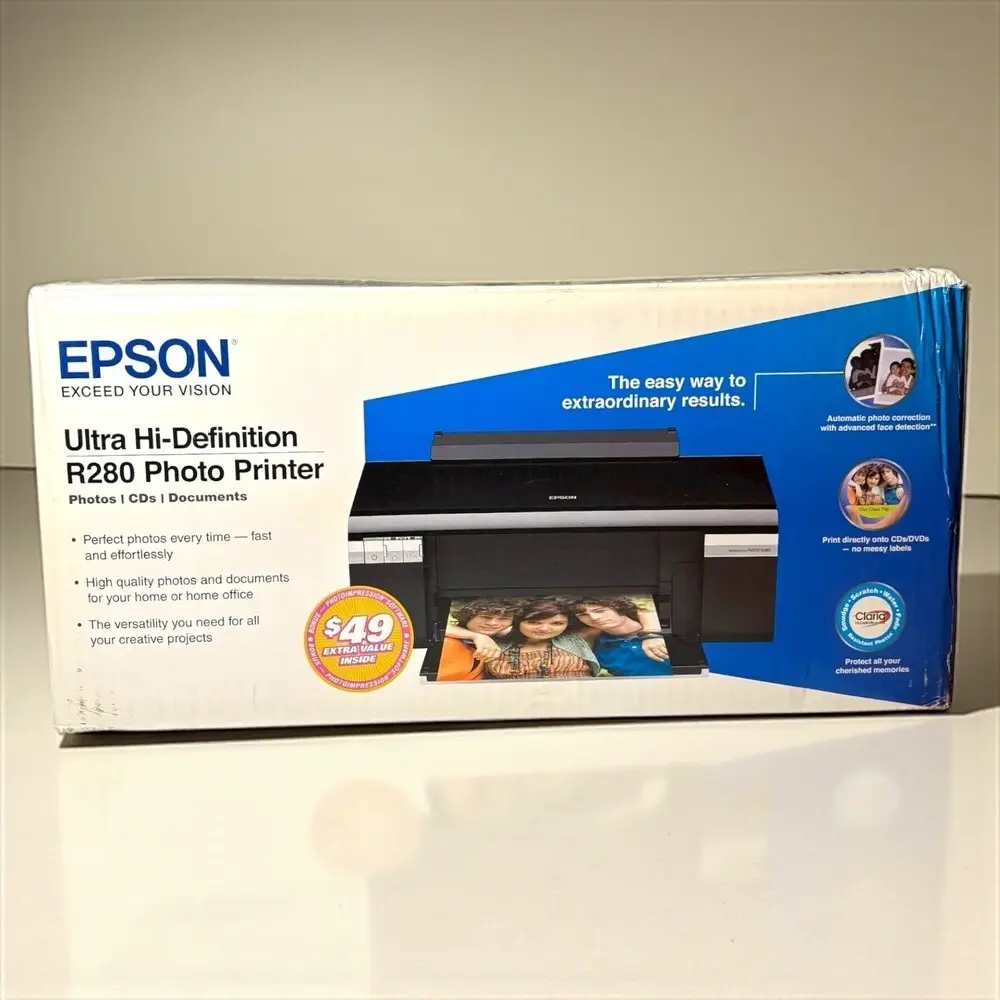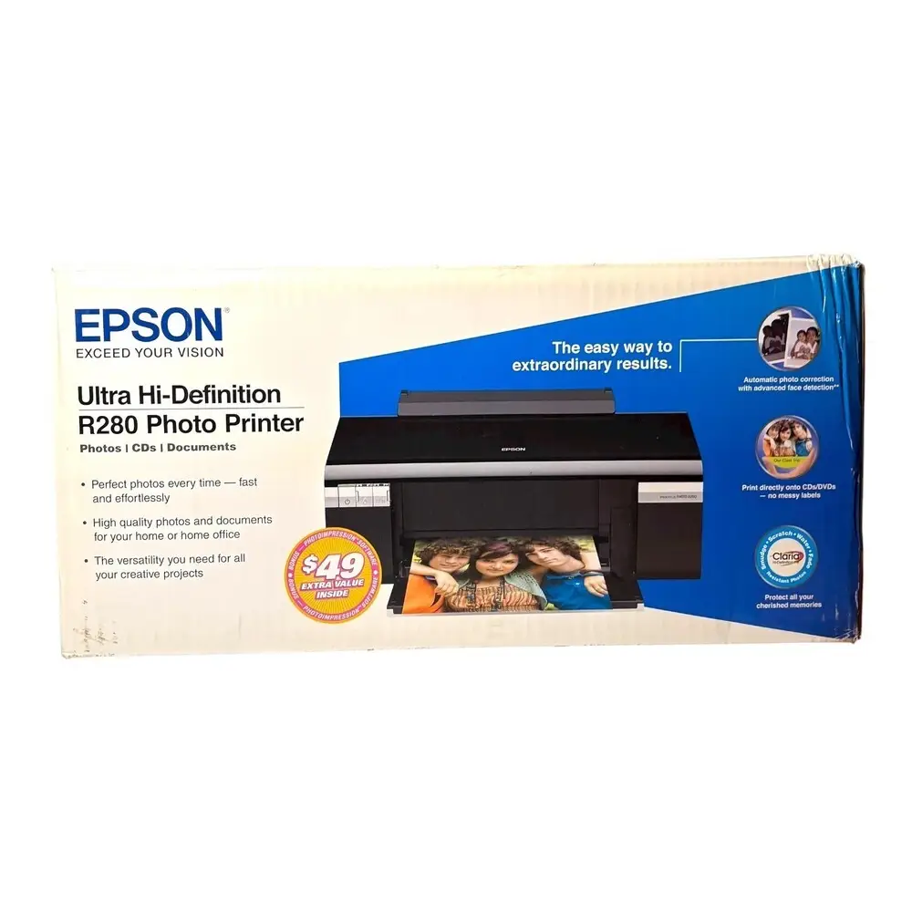 The Epson Stylus Photo R280 is a high-quality inkjet printer designed primarily for photo printing and office use, released in 2007. It features a 6-color Claria ink system, which delivers vibrant and detailed images with enhanced color accuracy. The printer supports a maximum print resolution of up to 5760 x 1440 optimized dpi for photo prints. Connectivity options include a USB 2.0 interface for fast data transfer. With a compact design, the R280 supports various media types, including glossy photo paper, envelopes, and plain paper. It is compatible with Windows and Mac operating systems, providing flexible driver support for diverse users.