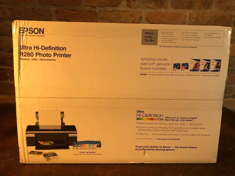 The Epson R280 delivers superior photo print quality using its 6-color Claria Photo Ink system on various photo media. Its high-resolution capability of up to 5760 x 1440 optimized dpi ensures sharp, detailed image output. The compact footprint makes it suitable for small spaces without compromising print performance. It supports multiple paper sizes and finishes, increasing versatility for different photo projects and print formats. USB 2.0 connectivity offers reliable, fast data transmission for smooth printing workflow. Additionally, the printer is affordable and cost-effective for users focused on quality photo printing at home or in small offices.
