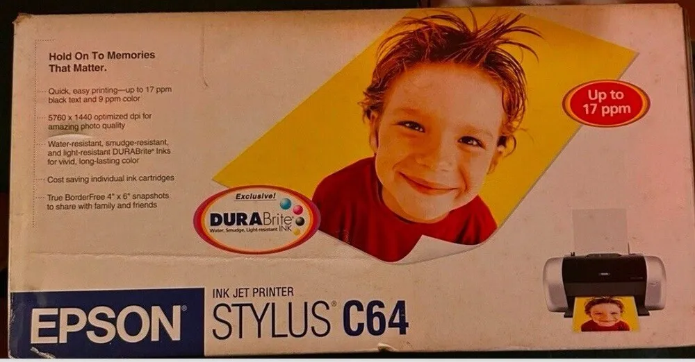 The Epson Stylus C64 is an inkjet printer designed primarily for home and small office use. It utilizes the MicroPiezo inkjet technology which allows for precise droplet control and produces high-quality color prints. The printer supports a maximum resolution of up to 1440 x 720 dpi, making it suitable for both text documents and images. It offers USB connectivity for easy connection to desktop and laptop computers. The device supports multiple paper sizes including A4 and envelopes, and has a print speed rated at approximately 15 pages per minute for black and white and 7 pages per minute for color prints. Its compact and lightweight design makes it portable and convenient for limited workspace environments.