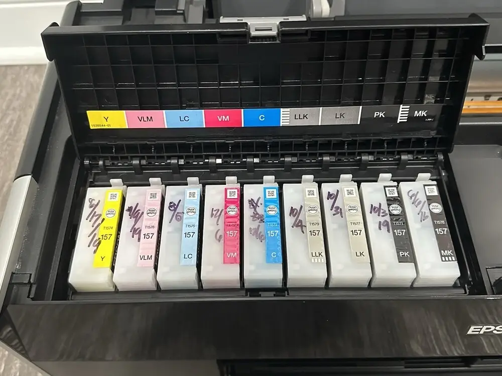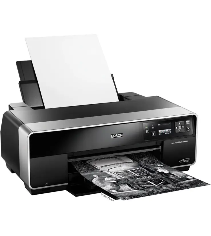 It uses Epson's UltraChrome K3 9-color pigment ink system, including three blacks for superior black-and-white and grayscale printing.