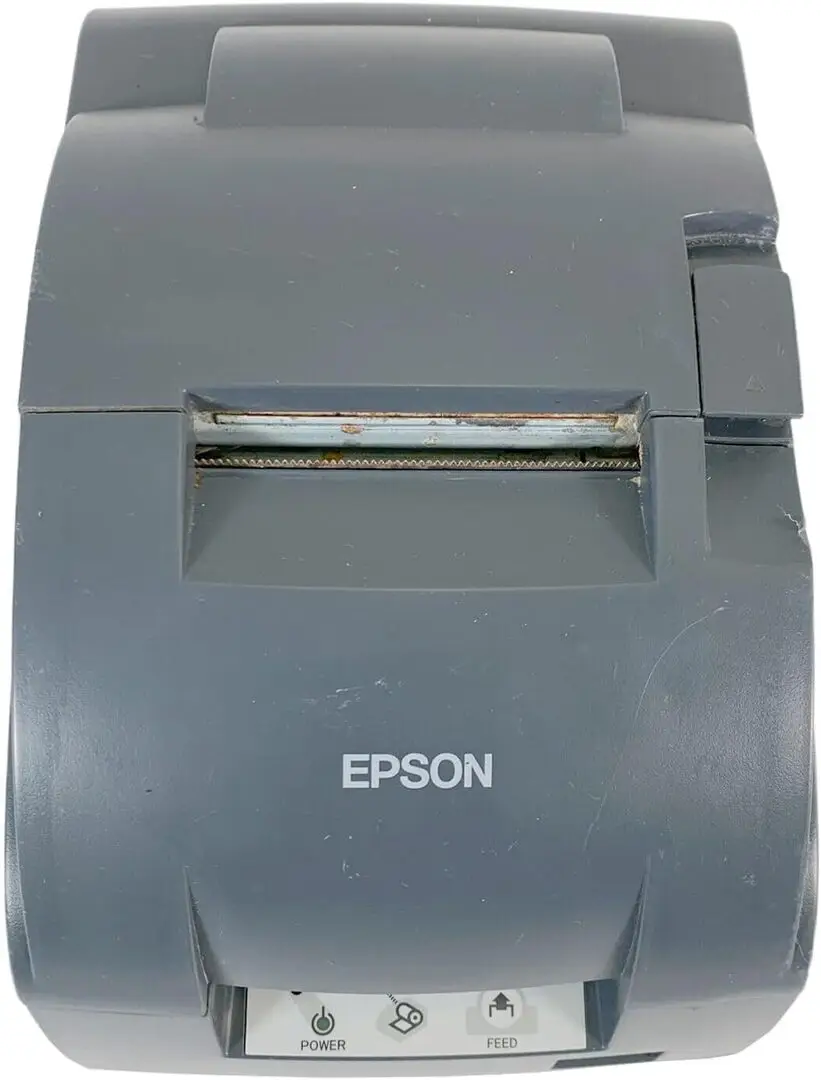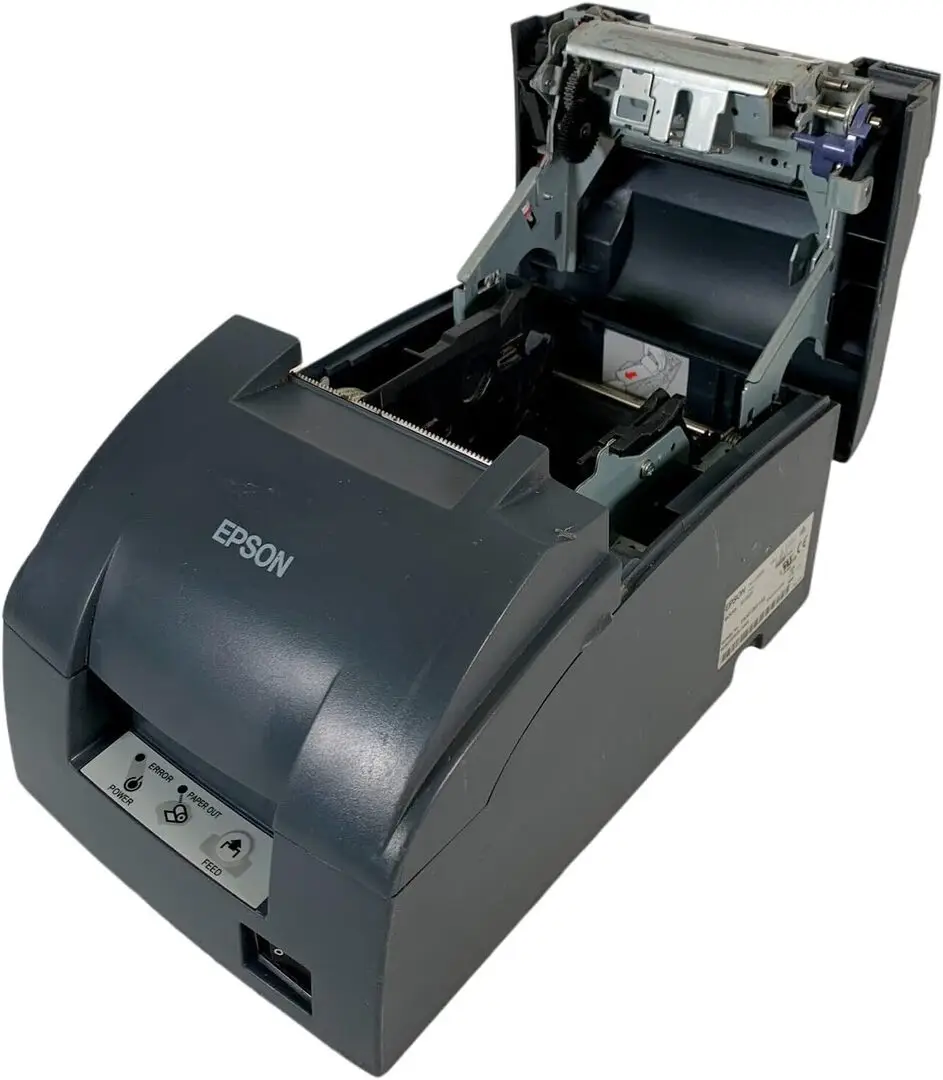 The Epson TM-U220B is a 9-pin impact dot matrix receipt printer widely utilized for point-of-sale applications. It operates at a printing speed of up to 4.7 lines per second in high-speed mode with 180 dpi horizontal resolution. Featuring a 42-column capability at 10 characters per inch, it supports multiple paper widths and thickness. The printer supports ESC/POS command system, enabling compatibility with various POS software and systems. It interfaces via serial (RS-232) or parallel ports, facilitating easy integration with legacy hardware. The TM-U220B also includes an auto-cutter functionality and is designed for continuous form paper handling.