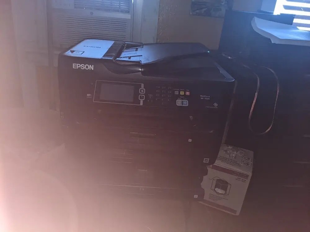 The WF-7620 is a multifunction printer supporting printing, scanning, copying, and faxing with wide-format capabilities.