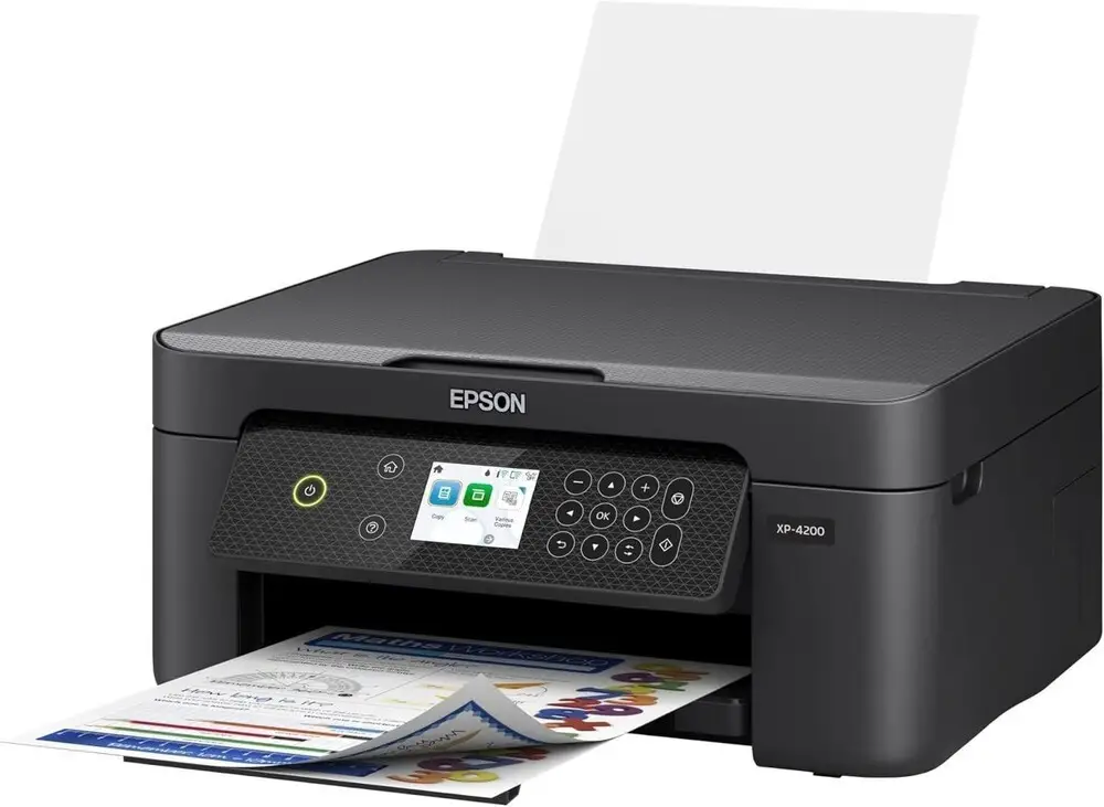 The XP-4200 offers wireless connectivity for easy mobile and remote printing. Its four individual ink cartridges help reduce ink wastage by allowing selective replacement. Compact design fits well in limited desk spaces for home or small office environments. The high print resolution ensures sharp photos and crisp text documents. Easy-to-use touchscreen interface enables quick operation without the need for a computer. Multifunction capability (print/scan/copy) consolidates essential office tasks in one device, saving space and cost.