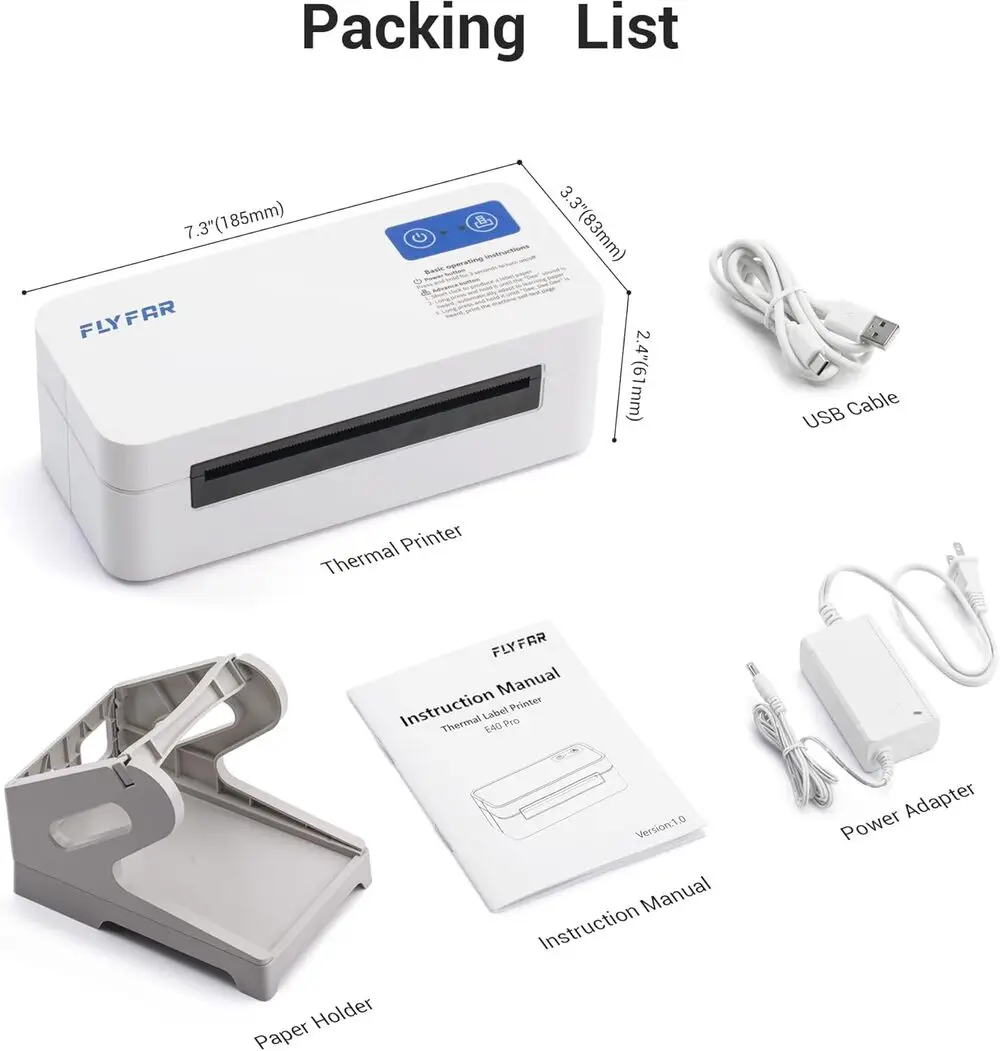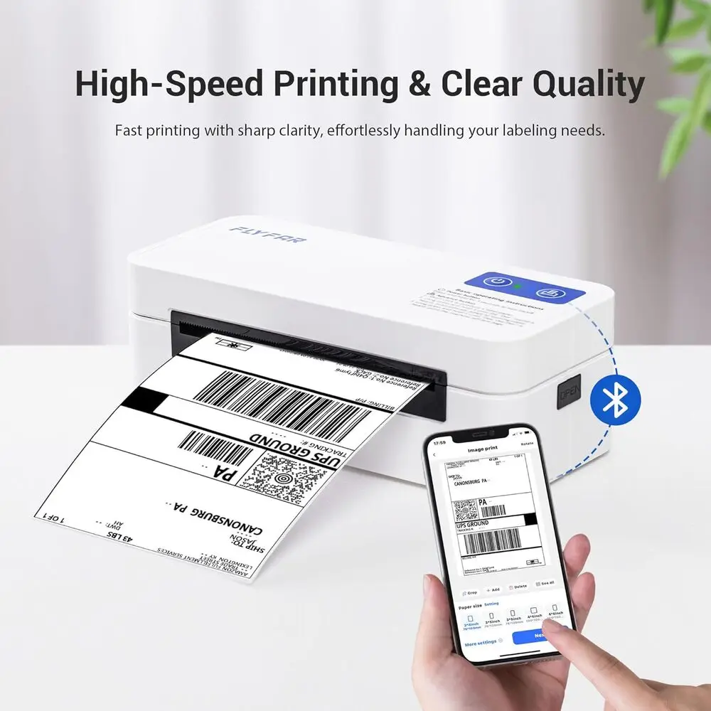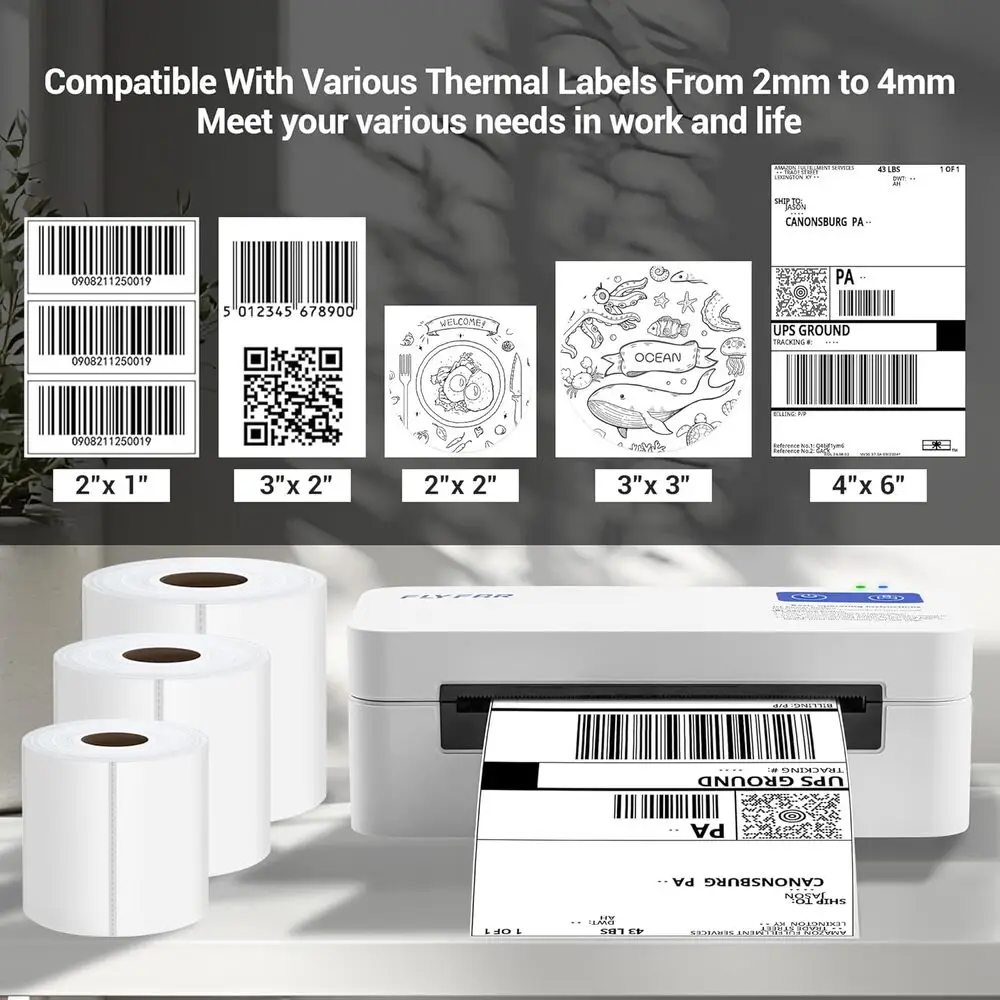 The FLYFAR E40 PRO can print on direct thermal labels compatible with standard widths, including shipping labels, barcode labels, and price tags.