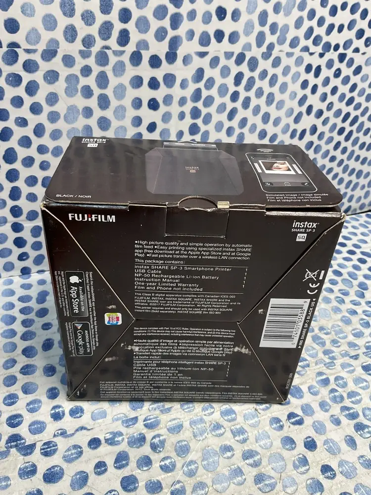 The Fujifilm Instax Share SP-1 is a compact wireless printer designed to print photos from smartphones and tablets using instax mini film. It connects via Wi-Fi and uses a dedicated mobile app to receive and process image data. The printer features ZINK zero ink technology that creates high-quality instant prints without ink cartridges. Its printing resolution is approximately 320 dpi, producing 2.4 x 1.8 inch photos typical of instax instant films. The SP-1 supports various image filters and layout options directly through the companion app. Powered by a rechargeable lithium-ion battery, it offers portability for on-the-go printing.