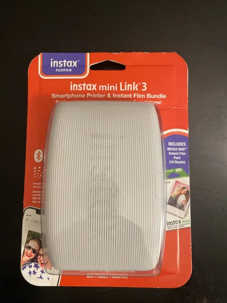 The Instax Mini Link 3 offers superior portability with a lightweight and compact form factor ideal for travel and events. It features enhanced connectivity with Bluetooth 5.1 for more reliable and faster pairing with smartphones. The printer supports various creative printing modes, allowing users to personalize prints directly from the app. Its battery life supports multiple print sessions on a single charge, making it practical for extended use. The device's AI image optimization improves photo clarity and exposure before printing, delivering better print quality. Additionally, the design includes user-friendly controls and app interface for seamless operation even by beginners.