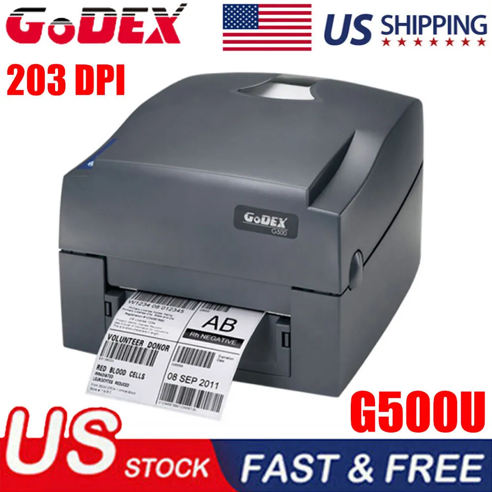The GoDEX G500U is a robust office electronics device designed primarily for barcode printing applications. It utilizes direct thermal and thermal transfer printing technologies to produce high-quality labels, tags, and receipts. The device supports a maximum print resolution of 203 dpi, ensuring clear and precise barcode and text output. It features a print width of up to 108mm and a print speed capable of reaching 127mm per second, suitable for high-volume label production. The G500U includes multiple connectivity options such as USB, Serial, and Parallel ports, enabling versatile integration with various computer systems and POS setups. Its built-in microprocessor and memory provide reliable performance and efficient handling of complex label formats and graphics.