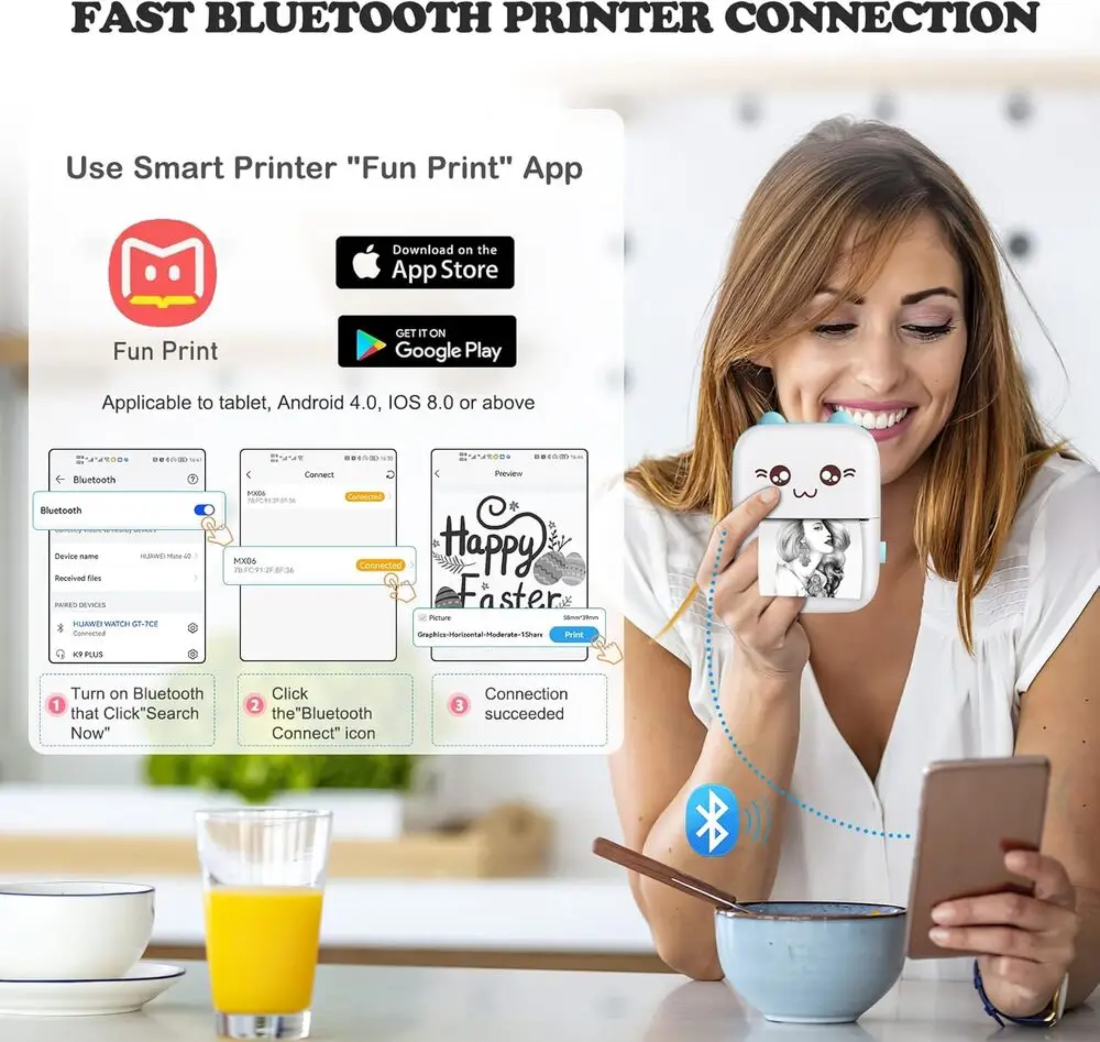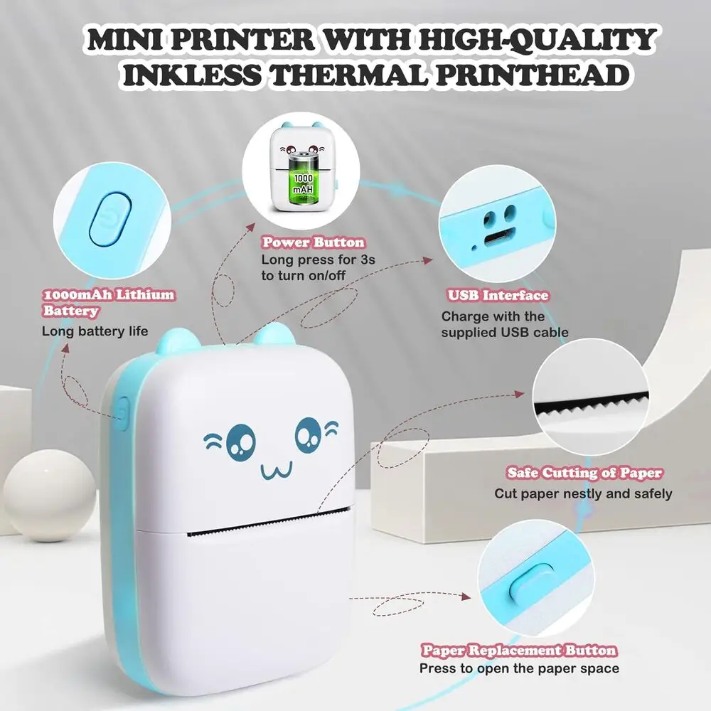 The device uses standard direct thermal paper rolls compatible with portable thermal printers.
