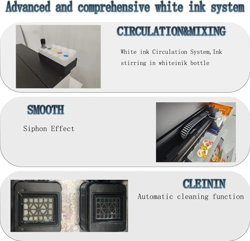 The device employs a robust driver mechanism optimized for efficient printing processes to reduce operational downtime. It also features an embedded control system that manages print speeds and ink usage based on the selected printing mode. Compatible with popular RIP software, the A3-XP600 enhances output customization. Furthermore, the printer's dimensions and weight are optimized for typical office space environments ensuring convenient setup and maintenance. Advanced firmware ensures up-to-date performance improvements and feature enhancements are accessible through periodic updates.
