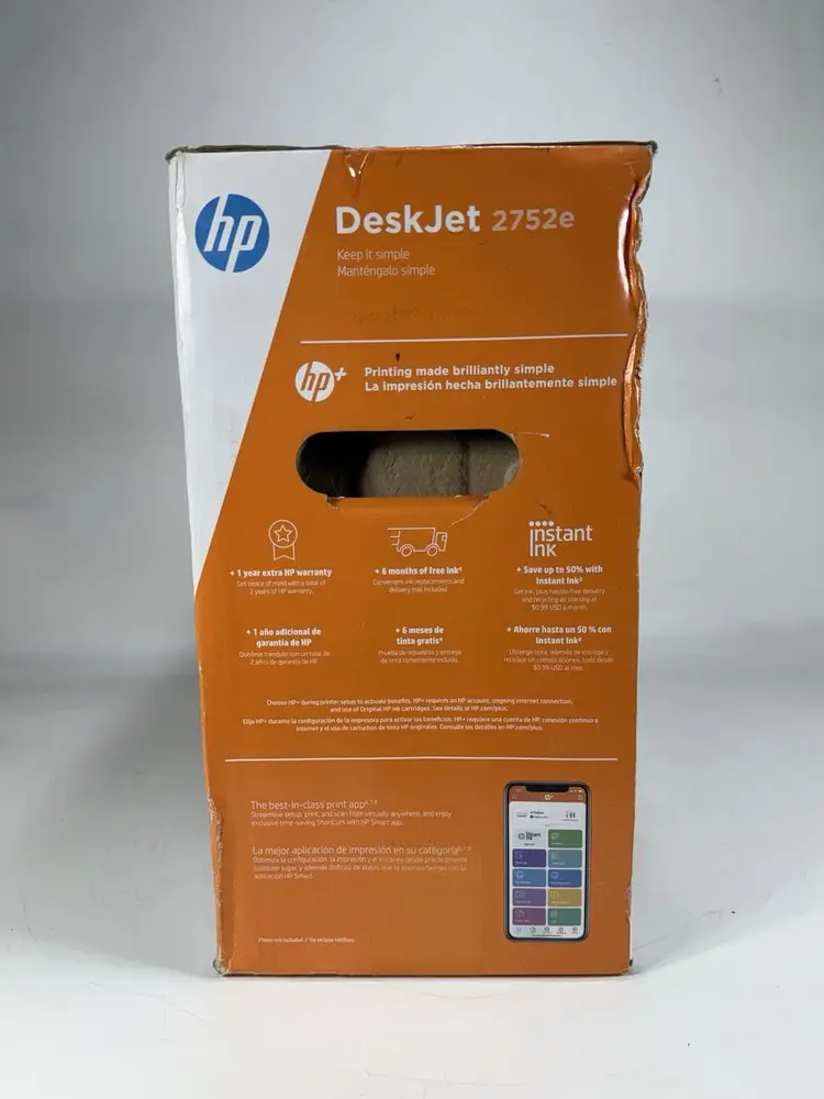 The HP Deskjet 2752e is an all-in-one inkjet printer designed for home and office use, offering printing, scanning, and copying functionalities. This model supports wireless connectivity through Wi-Fi, enabling convenient mobile and remote printing using HP's Smart app. It features a print speed of up to 7.5 pages per minute for black and white and 5.5 ppm for color, suitable for moderate productivity needs.