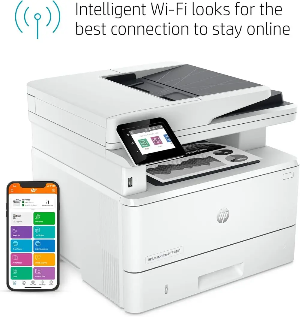 The HP 4101fdwe provides fast and high-quality laser printing with up to 40 ppm output, enhancing office productivity.