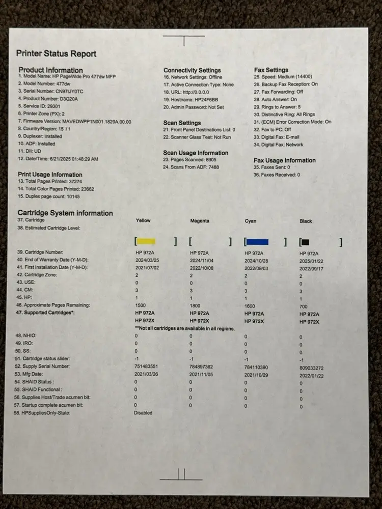While offering many advantages, the PageWide 477dw's initial purchase cost is higher compared to some traditional laser printers. Its ink cartridges may have a higher upfront cost and could be less readily available than toner cartridges. The device size, while compact for its capabilities, may still be relatively large for very small office spaces. Some users may find the setup process complex without technical support. The color accuracy, although good, might not meet professional photo printing standards. Paper capacity and output bin size could be limiting for very high volume environments.