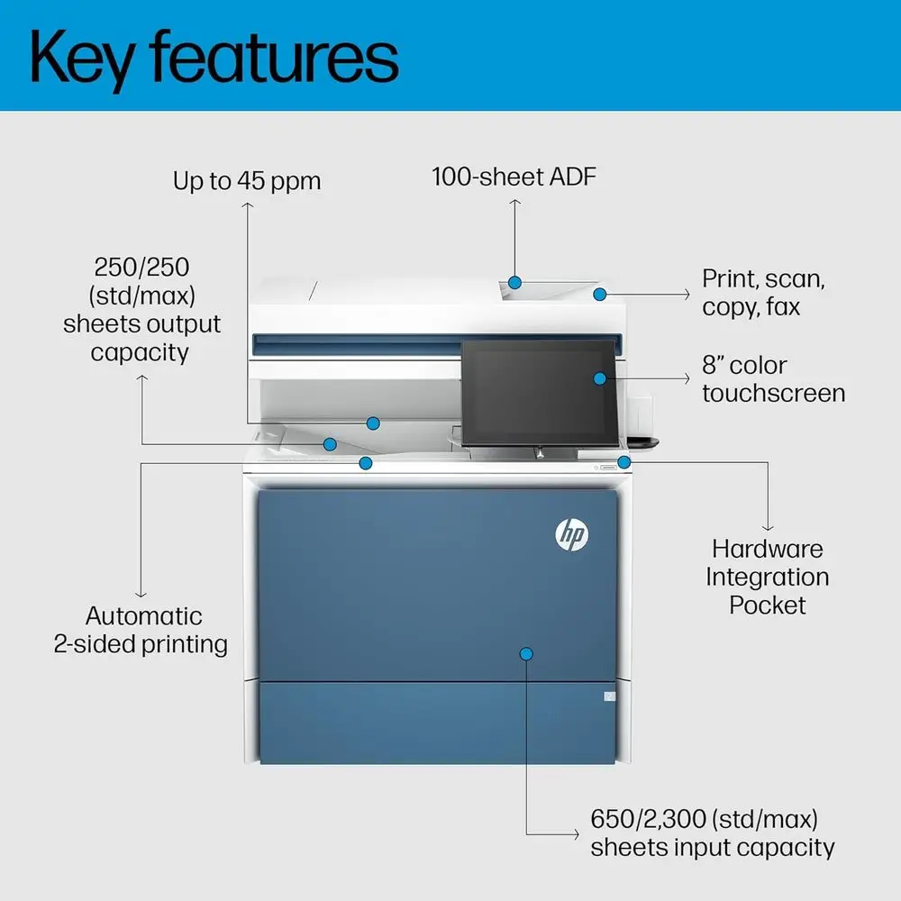 As an older model in the 5800 series, the HP 500f lacks some modern connectivity options like USB 3.0 or wireless capabilities. Replacement parts may be harder to find due to the discontinued nature of this series. Its performance, while solid for its time, may not meet the demands of current high-speed office applications. The device's size and weight can be bulky compared to newer, more compact models. Advanced features such as touchscreen controls or cloud connectivity are not available. Firmware updates and technical support have become limited over time.
