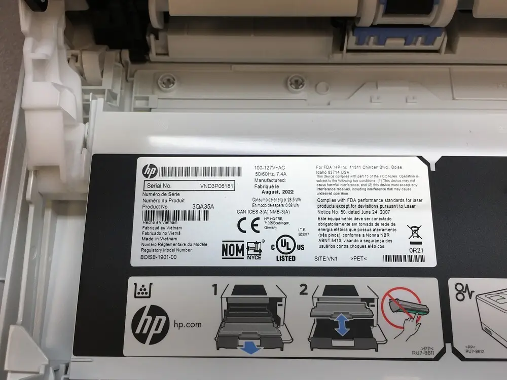 The printer employs a single function dedicated print mechanism, utilizing HP’s proprietary toner cartridges for reliable and consistent performance. It supports various operating systems including Windows and Mac OS via built-in drivers and compatibility layers. Firmware updates and management can be handled through HP's software utilities enhancing device usability. The device incorporates standard security features such as secure boot and access controls to protect sensitive business data.