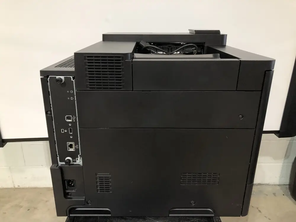 The HP Color LaserJet M651DN is a high-performance office color laser printer designed for enterprise-level document processing. It operates with a print speed up to 45 pages per minute in both color and monochrome, optimized by HP's advanced print engine technology. The printer supports a maximum paper input capacity of up to 2,100 sheets with its standard trays and optional feeders, suitable for medium to large offices. It features an automatic duplex printing mechanism that enhances productivity and reduces paper consumption. Connectivity options include USB 2.0 and Ethernet networking, supporting integration into office environments. The device utilizes HP's long-life toner cartridges for efficient and consistent print quality.