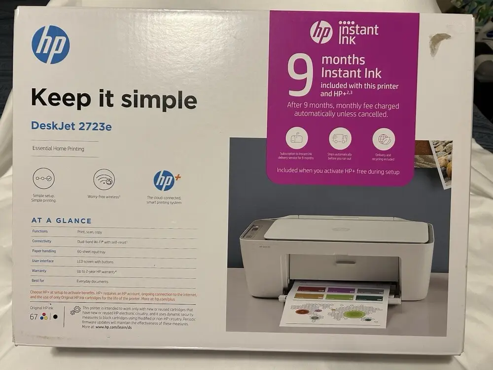 The HP DeskJet 2723e supports wireless Wi-Fi connectivity as well as USB connection for versatile device integration.