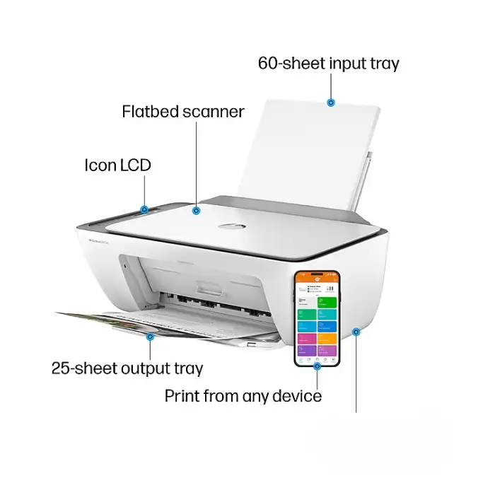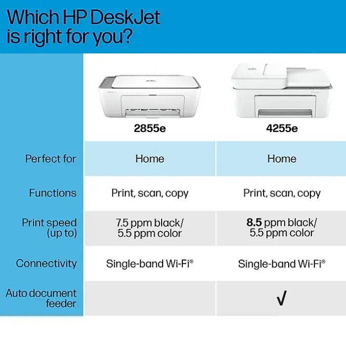 The HP DeskJet 2855e has a relatively slow print speed compared to higher-end models, which might be limiting for heavy print volumes. The input tray capacity is modest at 60 sheets, requiring frequent refills for larger tasks. It uses individual ink cartridges, which could lead to higher running costs over time. The device lacks an automatic document feeder, limiting batch scanning or copying capabilities. It does not support Ethernet connectivity, reducing wired networking options. Additionally, more advanced features like duplex scanning or higher resolution photo scanning are absent.