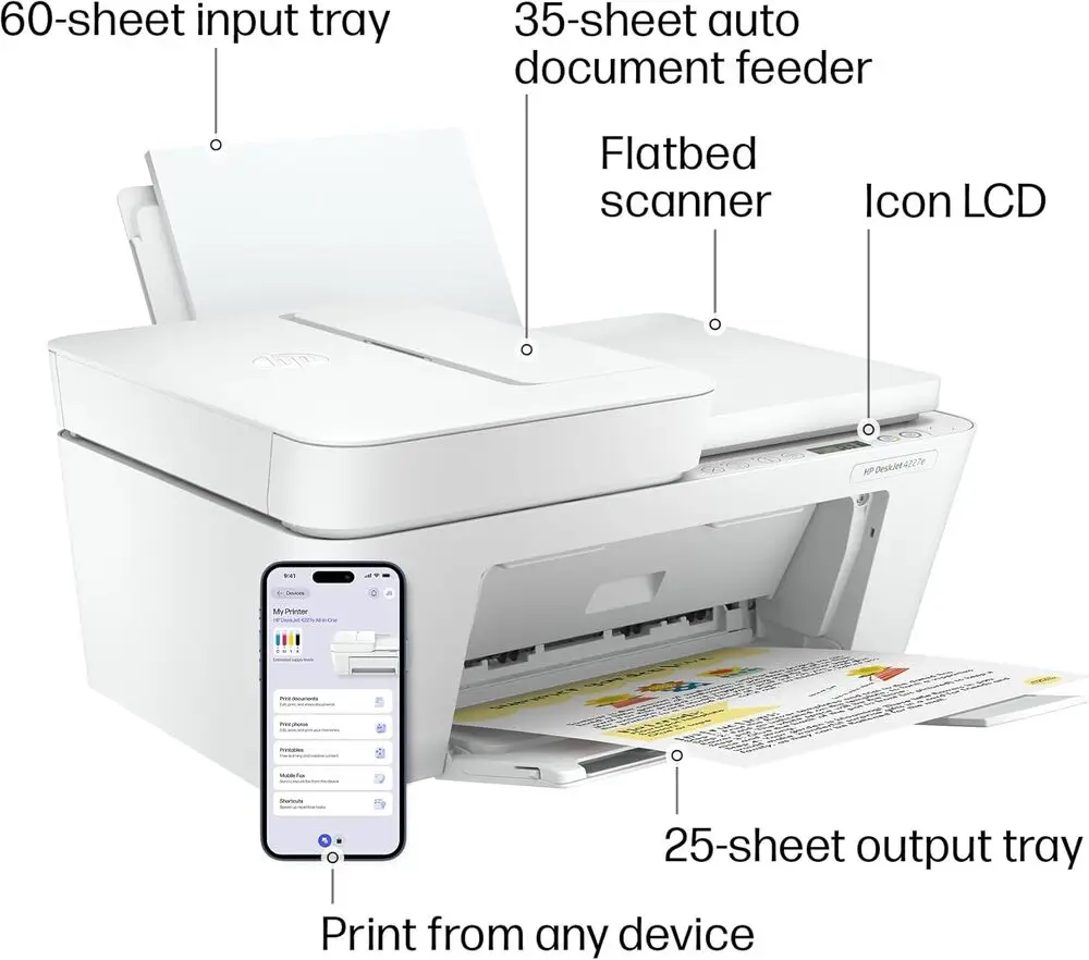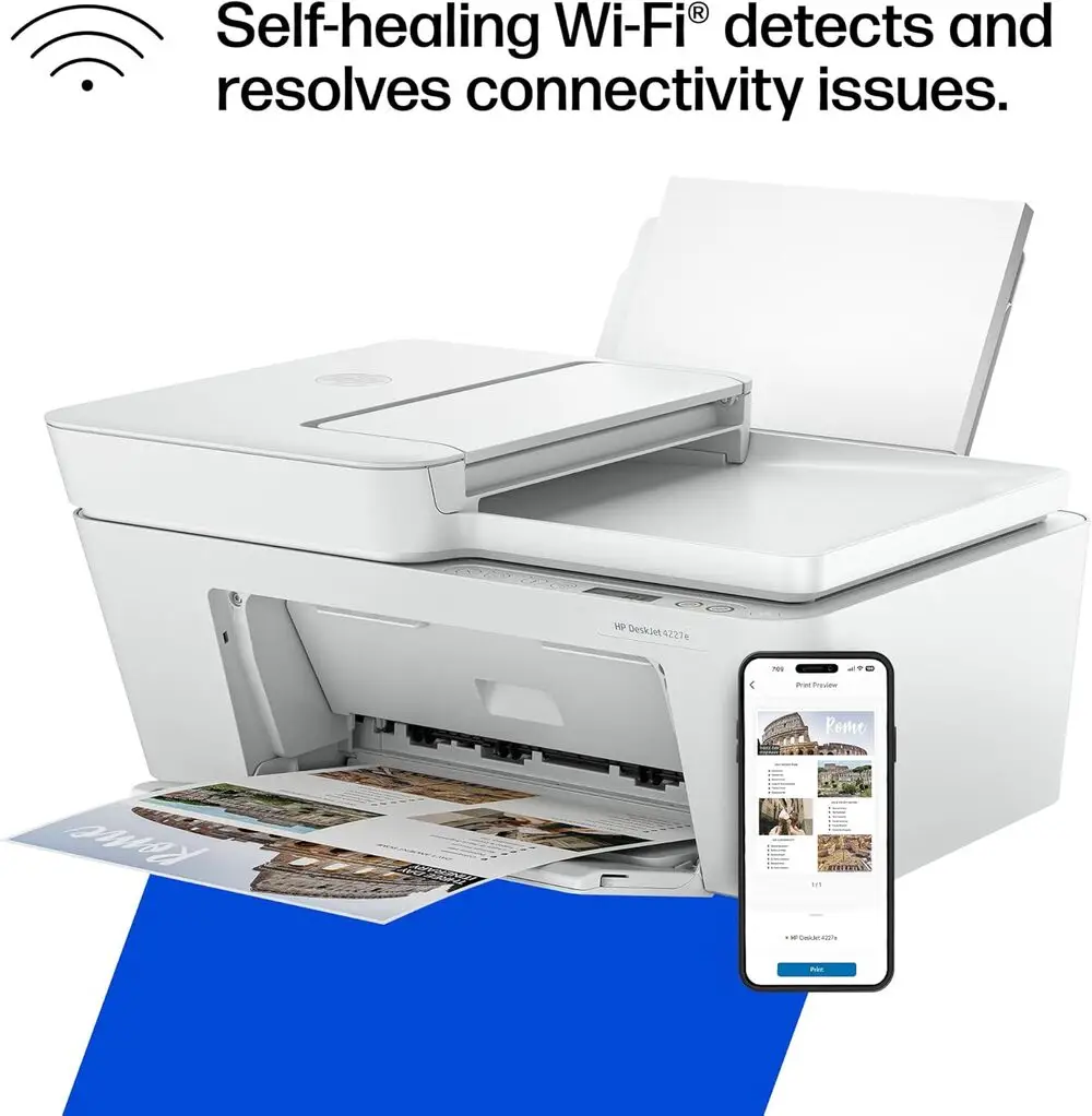 The HP DeskJet 4227e provides printing, scanning, and copying functions in a single compact device.