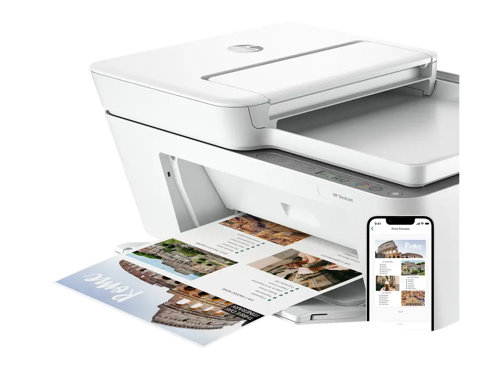 The HP DeskJet 4255e All-in-One Printer incorporates inkjet technology for high-quality color and black and white prints with a maximum resolution of up to 4800 x 1200 optimized dpi. It supports print speeds of approximately 8 pages per minute (ppm) in black and 5.5 ppm in color. This multifunction printer combines print, scan, and copy functionalities in a compact design optimized for home and small office use. It offers wireless connectivity through Wi-Fi and supports HP's Smart App, enabling mobile printing directly from smartphones and tablets. The device also features an automatic document feeder (ADF) and a flatbed scanner with up to 1200 dpi optical resolution. Energy-efficient with support for automatic sleep mode, it balances performance with power saving.