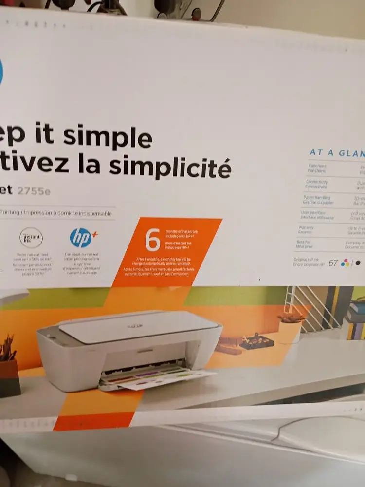 Connectivity options allow printing from smartphones, tablets, and laptops through standard Wi-Fi networks or via USB 2.0 port. Scanning is accomplished via a flatbed glass scanner supporting optical resolution up to 1200 dpi. Energy-efficient with Energy Star certification, the DeskJet 2755e comes bundled with HP's Instant Ink subscription support for cost management.