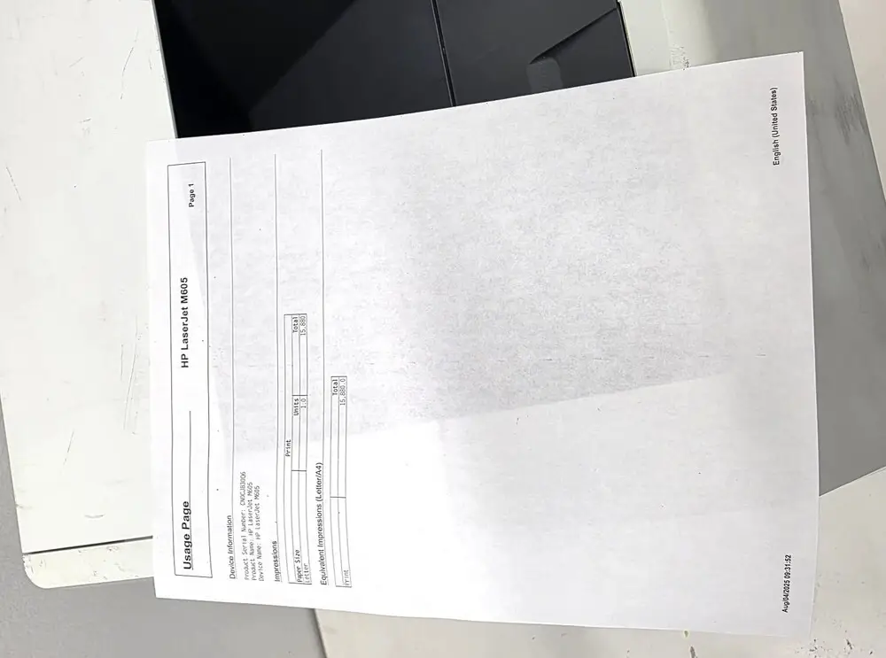 The HP M605 utilizes a high-capacity LaserJet toner cartridge with an estimated yield of approximately 12,500 pages, optimized to balance cost and output quality. The printer firmware supports PCL 6, PCL 5e, and PostScript emulation, ensuring compatibility with diverse printing environments.