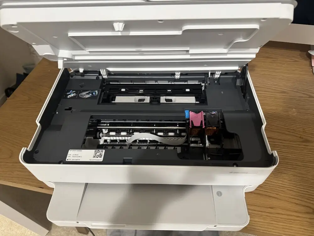 The Envy 6400 series printer uses individual ink cartridges which may increase cost if frequent color printing is required. Print speed is moderate, suitable for light to medium office printing but may not meet high-volume demands. The scanner resolution, while adequate for general use, lacks advanced features such as automatic document feeder or duplex scanning. The paper input tray capacity is limited, necessitating frequent reloads in busy environments. It does not support Ethernet wired network connection, limiting some office network flexibility. The device's software ecosystem and drivers may have limited support on some non-Windows platforms, impacting cross-platform usage.