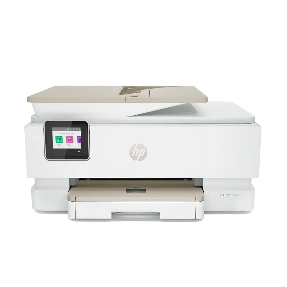 The HP Envy Inspire 7955e is a versatile all-in-one inkjet printer designed primarily for home office and photo printing applications. It supports high-quality color and black-and-white printing with an emphasis on photo accuracy and fast print speeds. The device integrates print, scan, and copy functionalities, utilizing thermal inkjet technology. It offers wireless connectivity options including Wi-Fi and Bluetooth, enabling seamless mobile printing from various devices. The printer supports borderless photo printing up to 8.5 x 11 inches and automatic two-sided printing. It includes an intuitive touchscreen control panel for ease of operation and supports HP's Instant Ink subscription service for ink management. The overall design balances print efficiency with convenience for everyday office and creative printing needs.