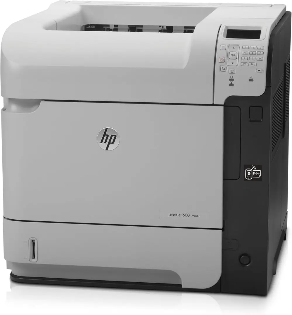 The HP LaserJet Enterprise 600 HEWCE994A-RC3 is a high-performance monochrome laser printer designed for medium to large office environments. It utilizes laser printing technology with a print resolution of up to 1200 x 1200 dpi, ensuring sharp and precise output. The device supports print speeds of up to 50 pages per minute, enhancing productivity for demanding print jobs. It features a robust processor and substantial memory capacity to handle complex documents and multiple tasks efficiently. Connectivity options include Gigabit Ethernet, USB 2.0, and optional wireless capabilities, allowing flexible network integration. The printer supports various media types and sizes, including envelopes and labels, with input tray capacities expandable for high-volume usage.