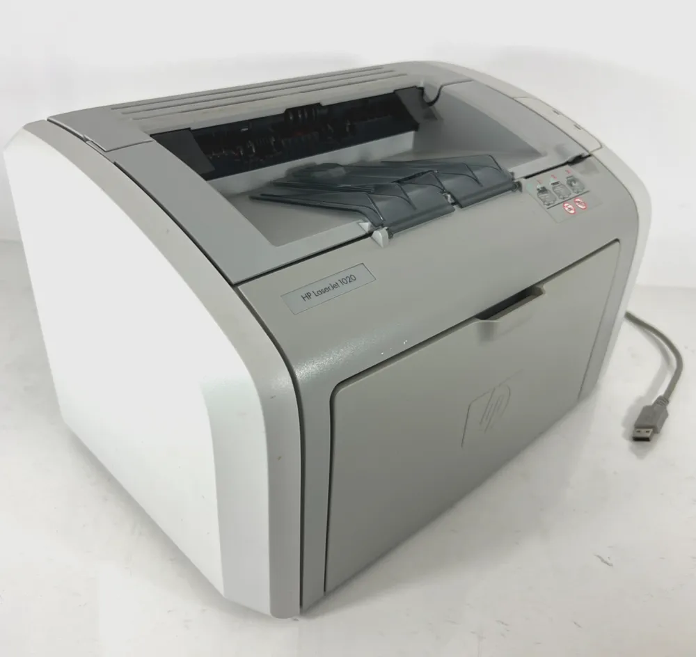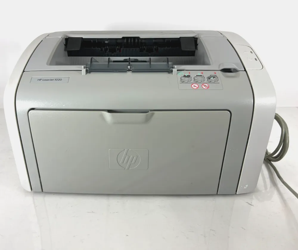 The HP LaserJet 1020 is a compact monochrome laser printer designed for small offices and home use. It features a print resolution of up to 1200 x 1200 dpi (enhanced) for sharp black and white text output. The device uses a 234 MHz processor and 2 MB of memory, enabling it to print at speeds up to 14 pages per minute. Connectivity is provided via a USB 2.0 interface, suitable for direct connection to a single PC. The printer supports various paper sizes including A4, A5, B5, envelopes, and custom sizes with an input tray capacity of 150 sheets. Its simple and minimalist design facilitates easy integration into small setups and limited workspace environments.