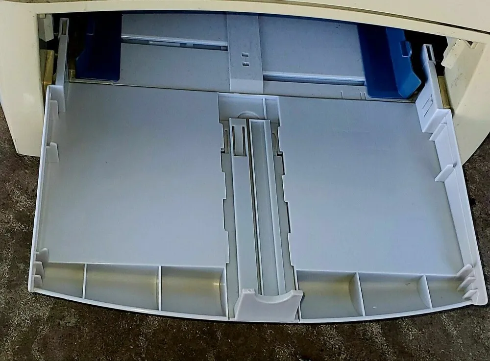 Its compact design includes a 250-sheet input tray and 100-sheet output bin, making it practical for small to medium offices.