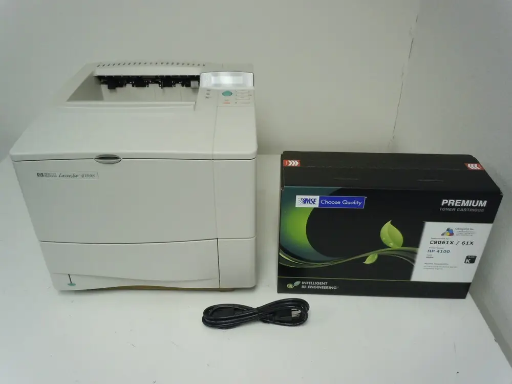 The LaserJet 4100N is limited to monochrome printing, which restricts it from producing color documents. Its print resolution, while sufficient for text, is lower compared to modern printers that offer higher dpi for photo-quality prints. The device's physical size and weight require significant office space. The printer lacks support for wireless connectivity such as Wi-Fi or Bluetooth, relying solely on Ethernet for network connections. Consumables, such as toner cartridges, can be relatively expensive compared to newer models. The overall technology is dated, which may cause compatibility issues with modern operating systems without updated drivers.