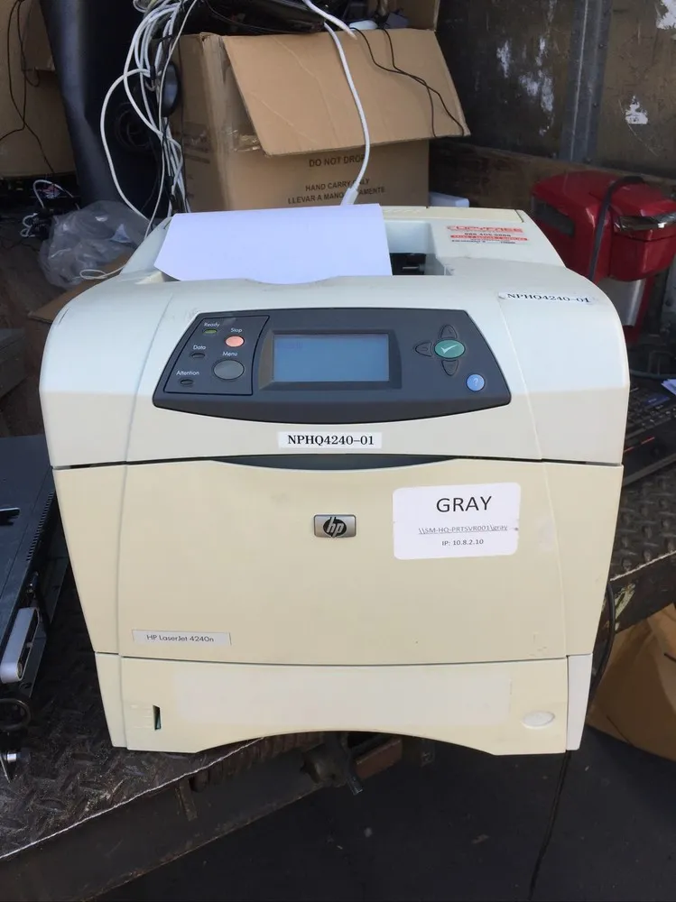 The HP LaserJet 4240n is limited to monochrome printing, which may not meet needs for color documents. Its relatively large physical size requires sufficient office space. The lack of built-in wireless connectivity restricts flexibility in modern office setups. While expandable, its maximum memory is low compared to contemporary standards. The printer uses older print engine technology, leading to higher noise levels during operation. Replacement parts and consumables may be difficult to source due to its discontinued status.